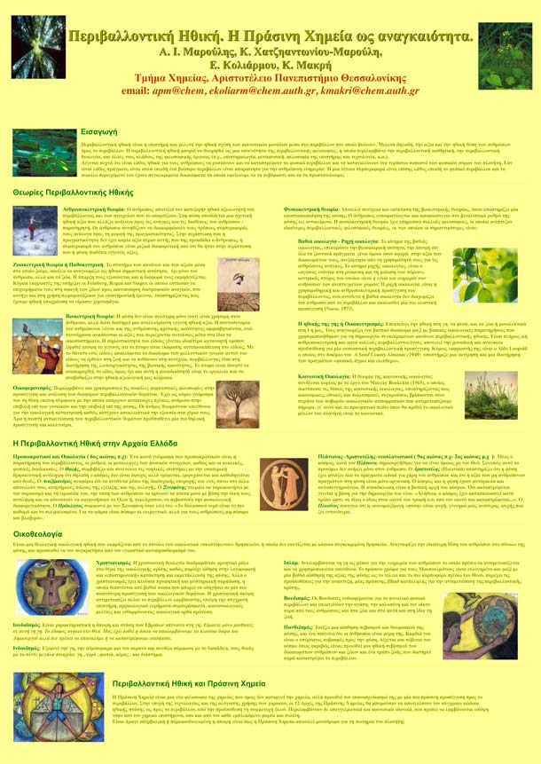 Περιβαλλοντική Ηθική. Η Πράσινη Χημεία ως αναγκαιότητα.